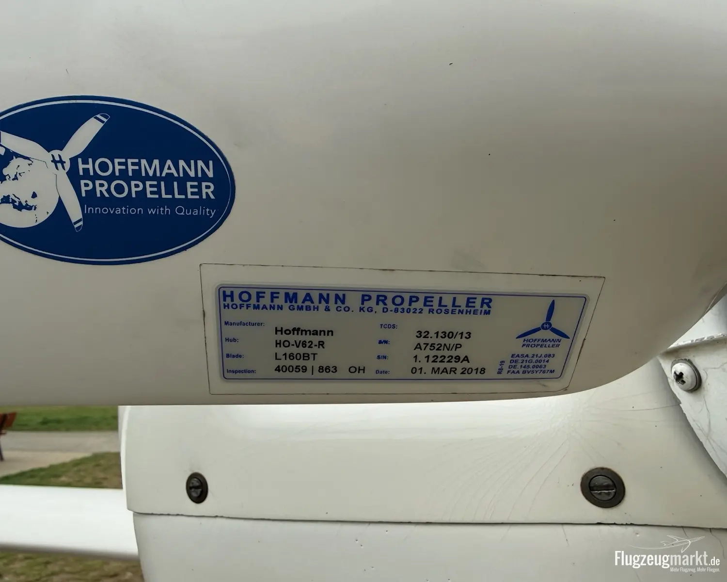 Propeller: Hoffmann HO-V62-R L160BT TSO: 230h TBO: 1600h